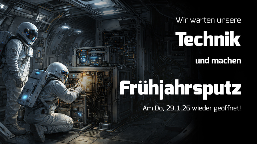 Keine Veranstaltungen, wir warten wie jedes Jahr alle unsere technischen Anlagen und machen großen Frühjahrsputz. Dann funkeln die Sterne wieder wie neu. Die Vorstellungen am Donnerstag Vormittag, 29.1.2026 finden statt.