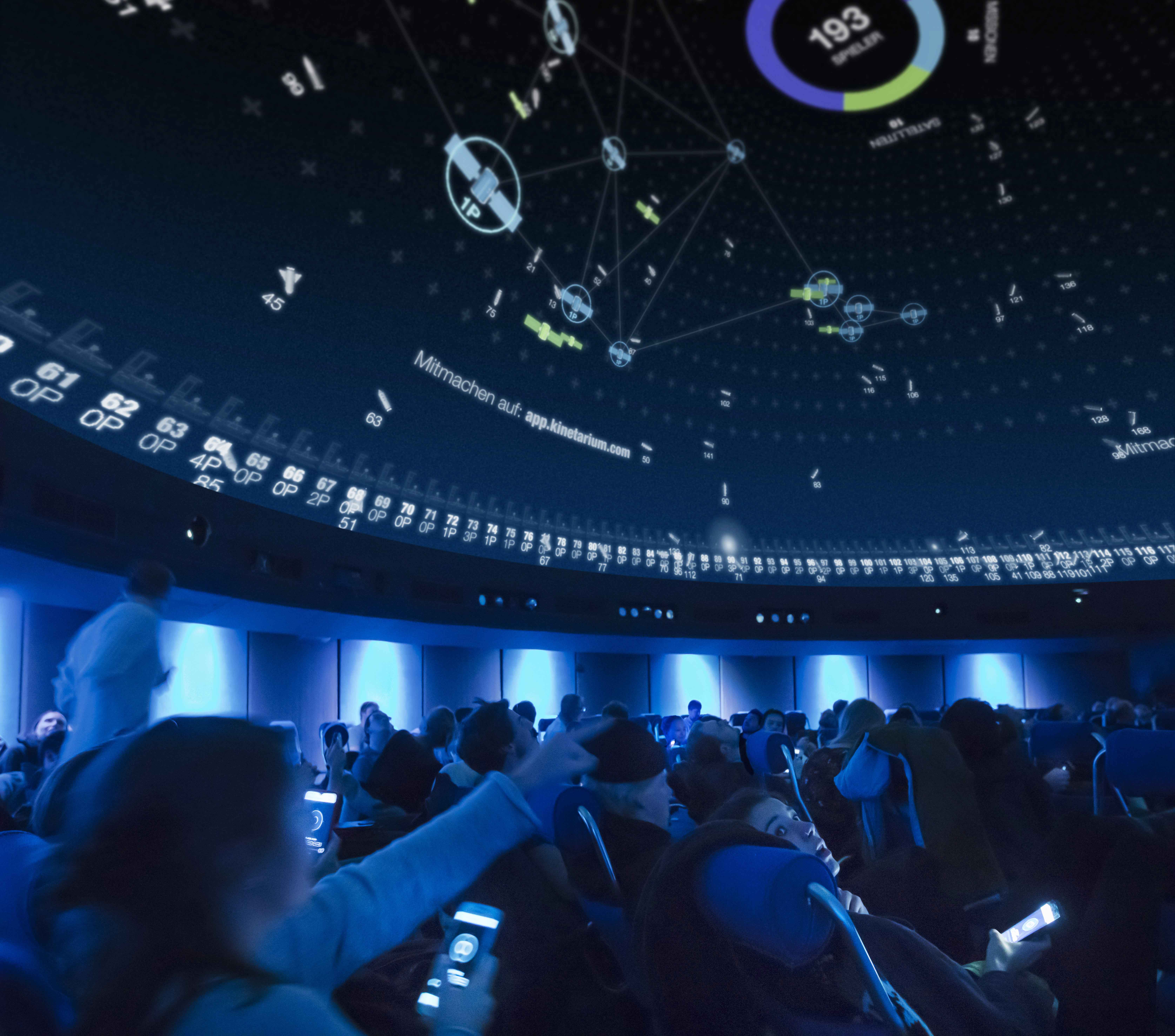 Mit Eurem Handy könnt ihr live ins Geschehen auf der Planetariumskuppel eingreifen. Um aktiv an der Veranstaltung teilzunehmen, bitte ein aufgeladenes iOS oder Android Gerät mitbringen.