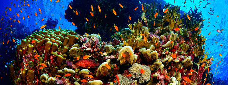 Erleben Sie Korallenriffe in allen Farben und tief abfallende Steilwände.